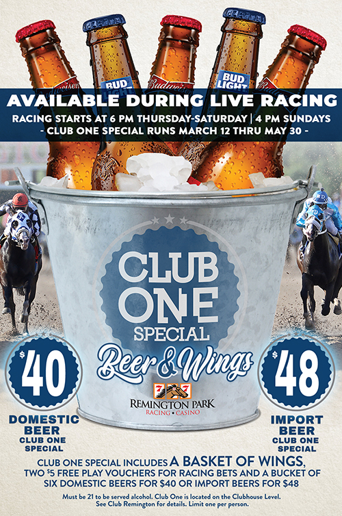 Club One is open for the 2026 Quarter Horse season at Remington Park thru May 30. Live Thoroughbred racing is scheduled for Thursdays-Saturdays at 6pm and Sundays at 4pm.